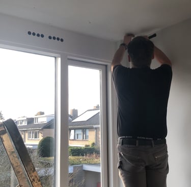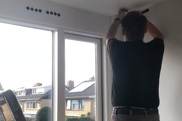 Wij monteren de rails en hangen gordijnen piekfijn af.
